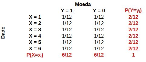 Distribuição Conjunta de Um Dado e Uma Moeda Honestos